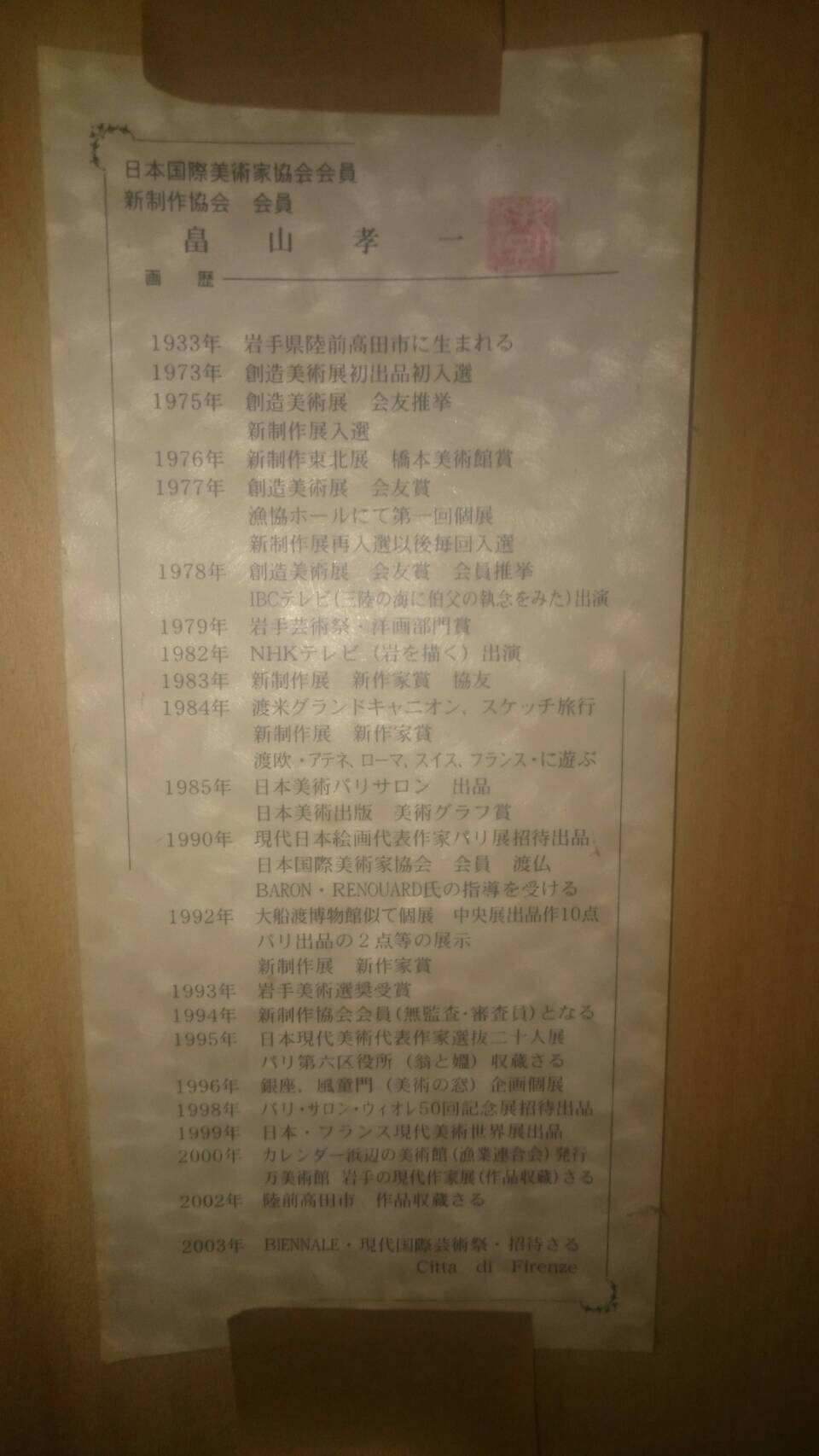 故畠山孝一画廊の遺言価格 ¥20,000,000